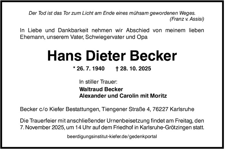 An dieser Stelle haben Sie die Möglichkeit, den Angehörigen Ihr Beileid auszusprechen. Hier finden Sie Platz für Ihre persönliche Anteilnahme.